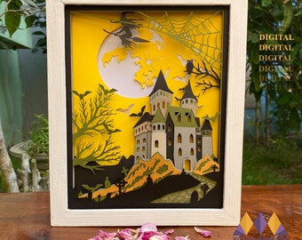 Shadow Box 3d Layered Papercutting Template Halloween Spooky Etsy Halloween Shadow Box Halloween Paper Shadow Box