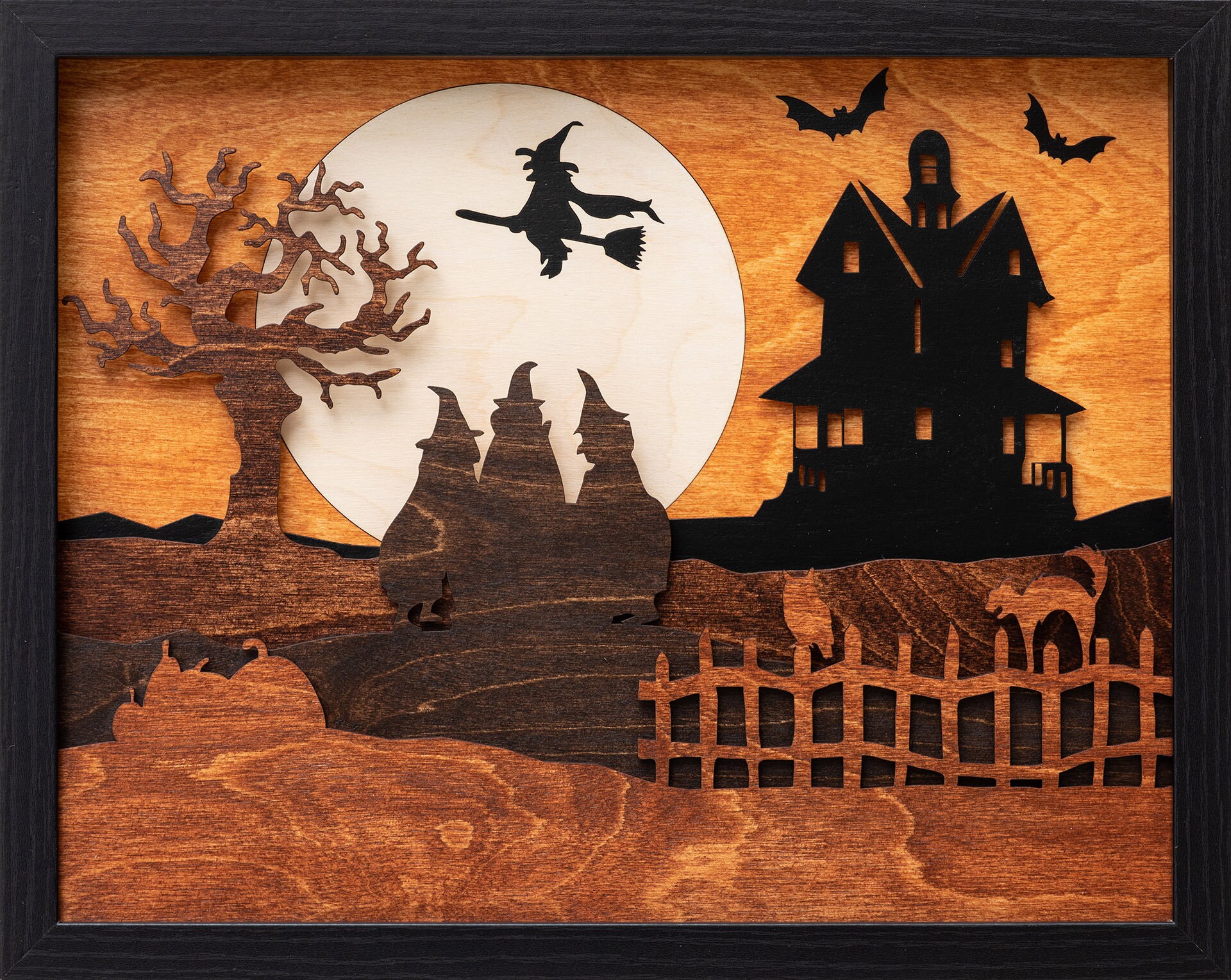 Witches Haunted House 3d Wood Shadow Box Scene Scary Fun Etsy Uk