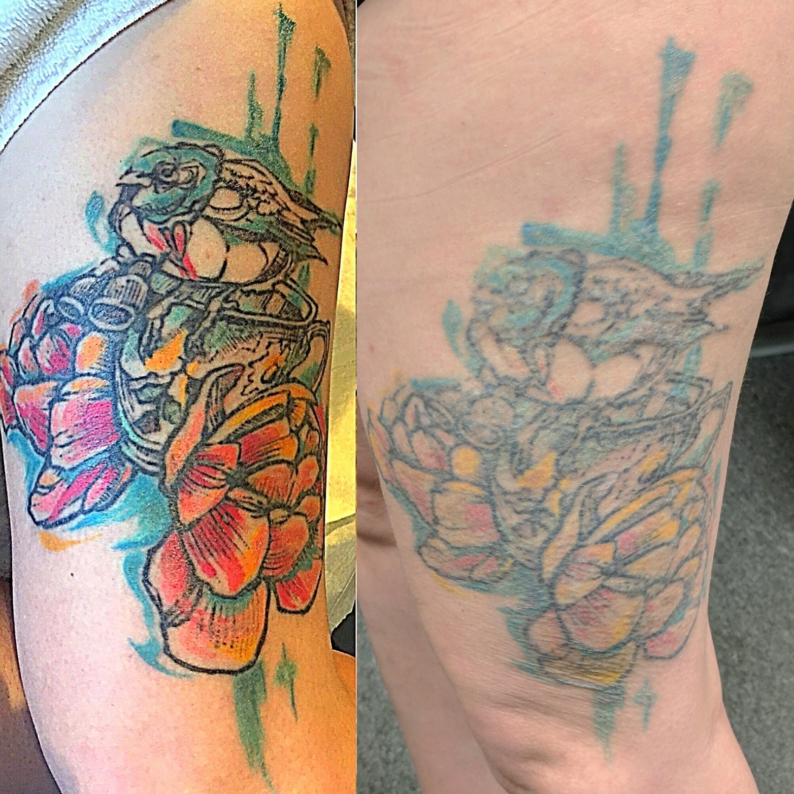 Bionic Tattoo Removal On Twitter Huge Bright Outer Thigh Tattoo With Extremely Stubborn Colours I Have Been Working Hard At Removing This Ink For My Awesome Client Amp Am Very Pleased With